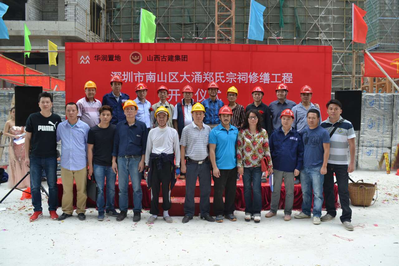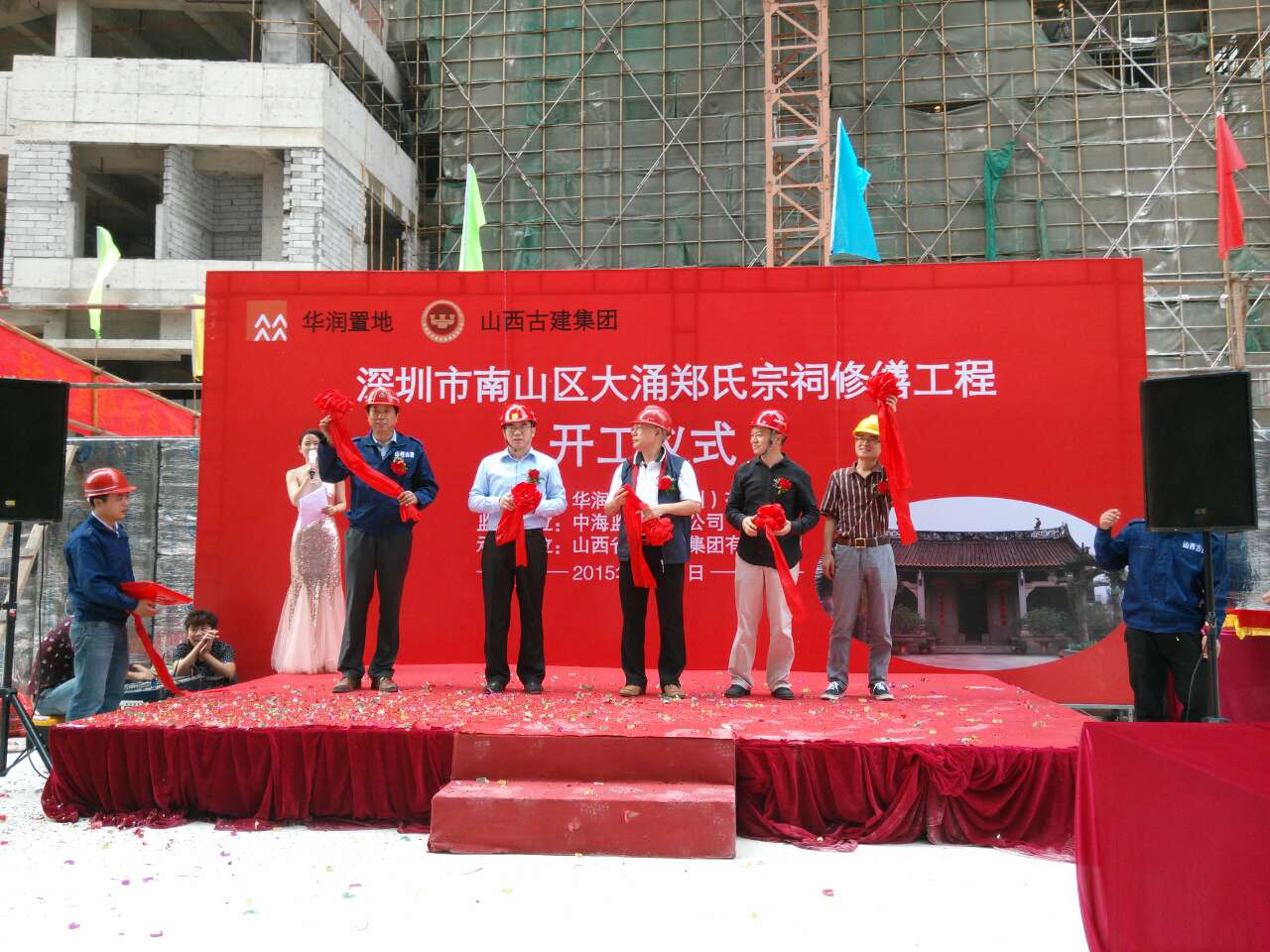 由山西省古建筑集团承建的“深圳市南山区大涌郑氏宗祠修缮工程”于3月31日举行开工仪式。华润置地(深圳)有限公司华润城副总经理饶少华致辞;郑氏宗祠委员会代表、荣安企业管理有限公司董事长郑荣科发表重要讲话;我公司副总经理曲运达作表态发言,表示一定会全力以赴,建好郑氏宗祠,留住大涌人的历史记忆。