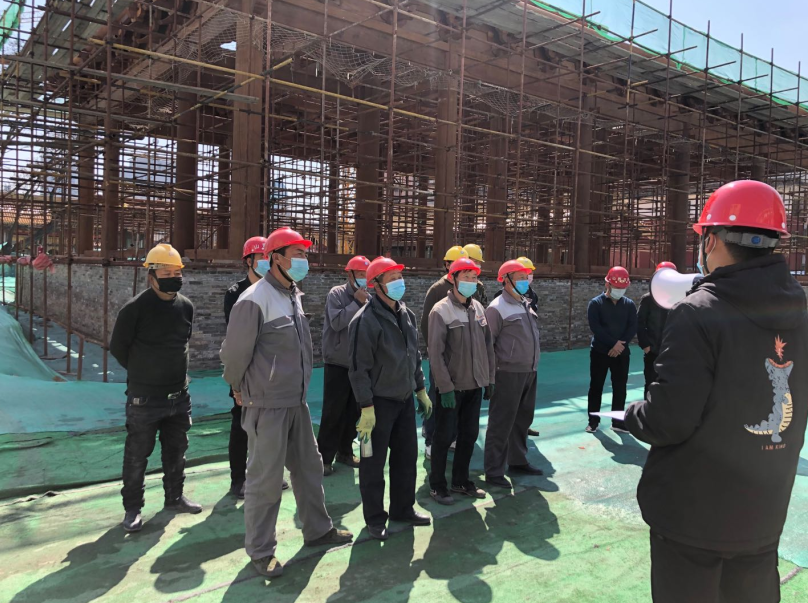 太原市皇庙修缮(复)保护工程 2020年施工人员进场安全三级教育、防疫措施宣传教育、消防演练