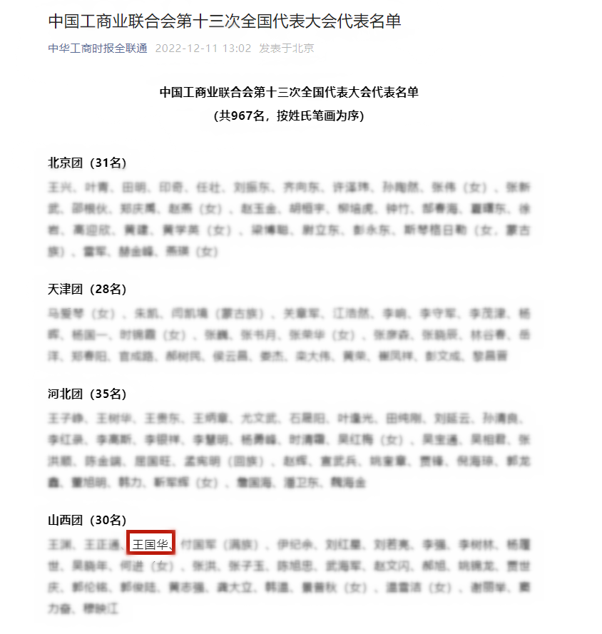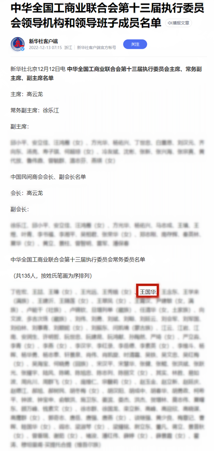 王国华董事长当选全国工商联第十三届执行委员会常务委员