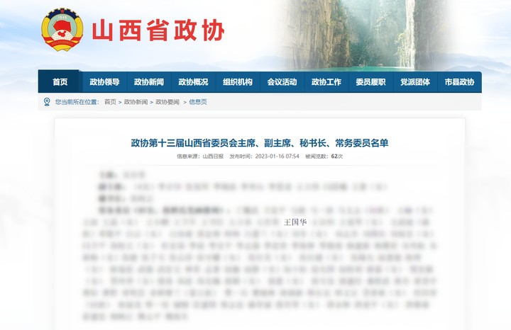 1月15日,省政协十三届一次会议举行第三次全体会议,会议选举产生了政协第十三届山西省委员会主席、副主席、秘书长、常务委员。王国华委员当选常务委员。