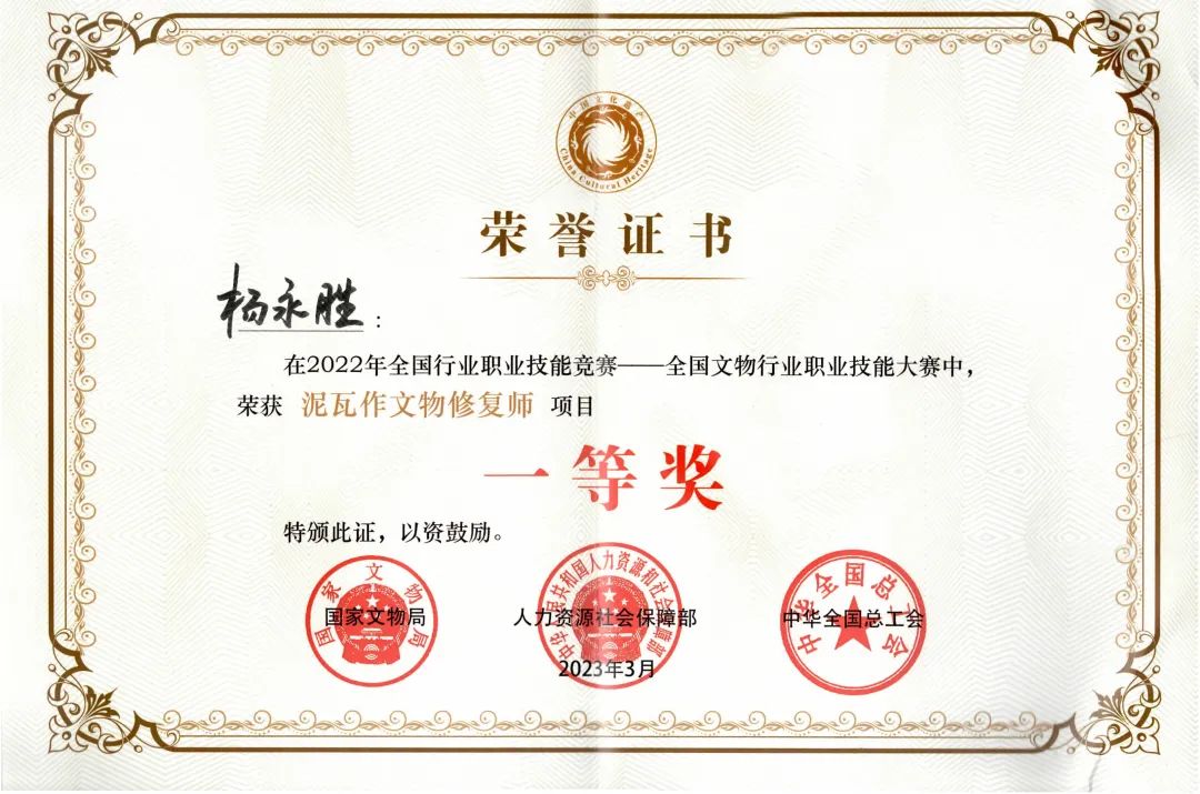 3月底,“2022年全国行业职业技能竞赛——全国文物行业职业技能大赛”在太原落下帷幕。山西省古建筑集团员工杨永胜在如林高手中脱颖而出,荣获泥瓦作文物修复师项目全国第一名。