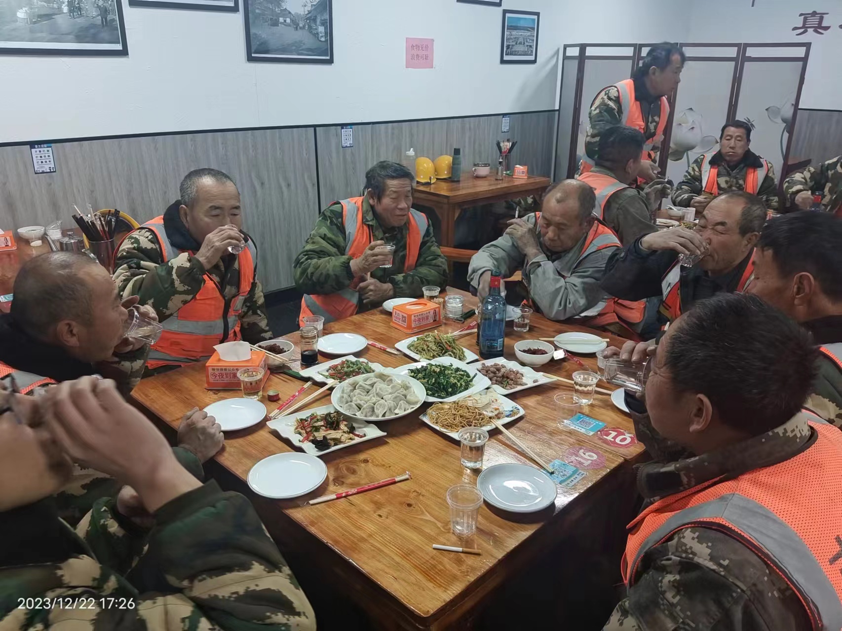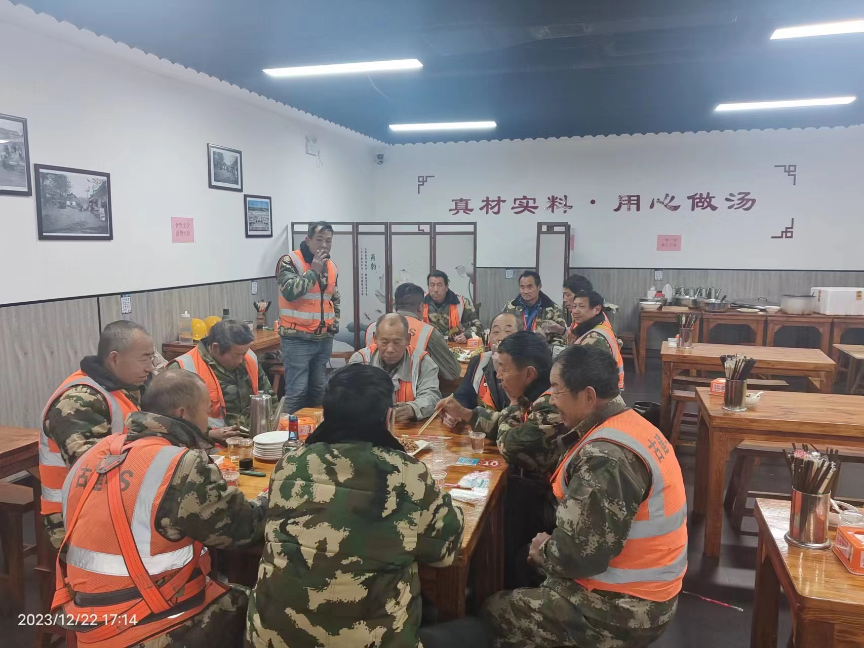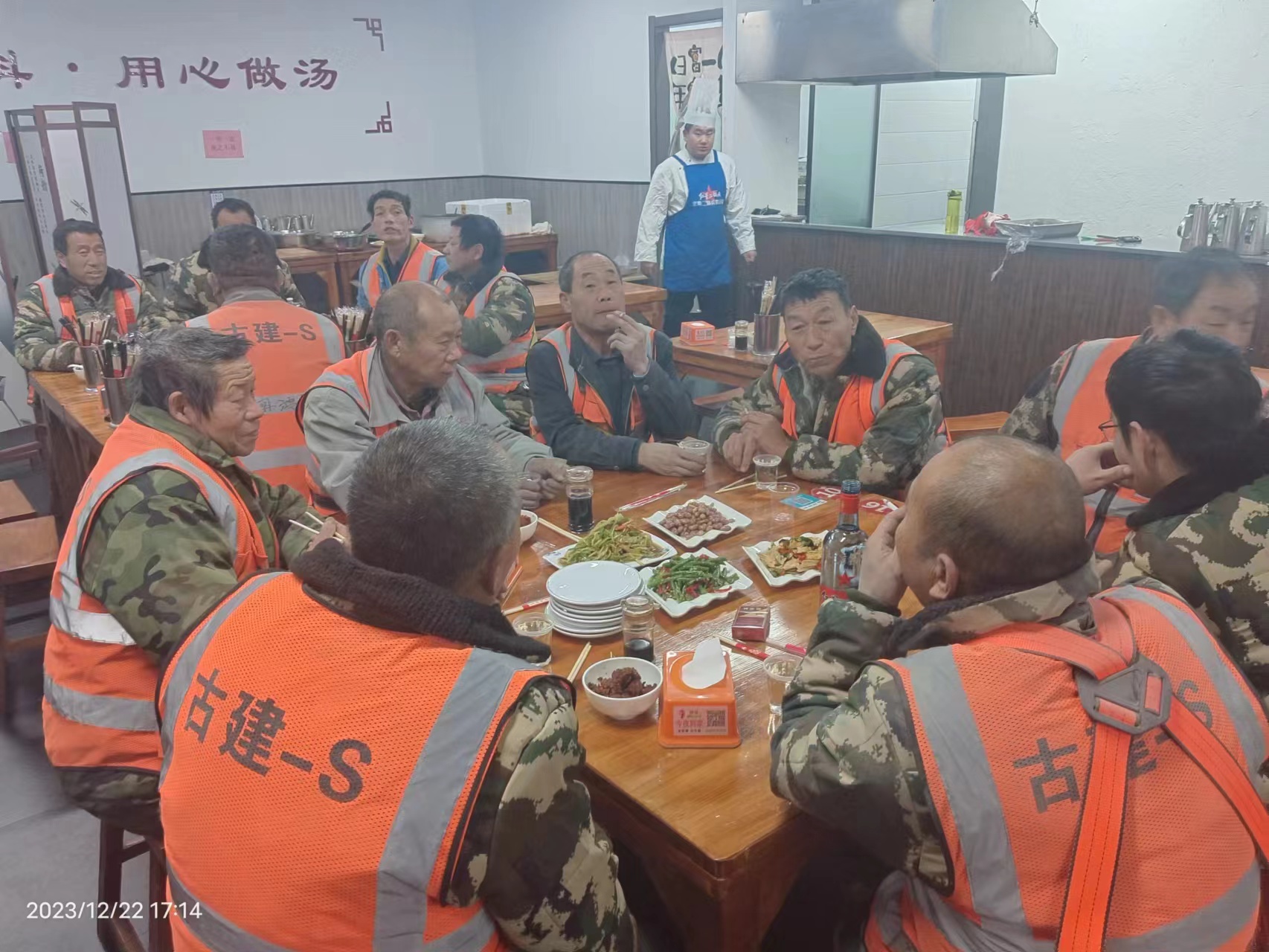 员工食堂内气氛和谐,到处洋溢着“家”的味道、家”的温馨,大家在寒冷的冬日里感受到了古建家庭浓浓的关怀和温暖。大家纷纷表示,要在今后的工作中鼓足干劲,以更加饱满的精神迎接新一年的开始。