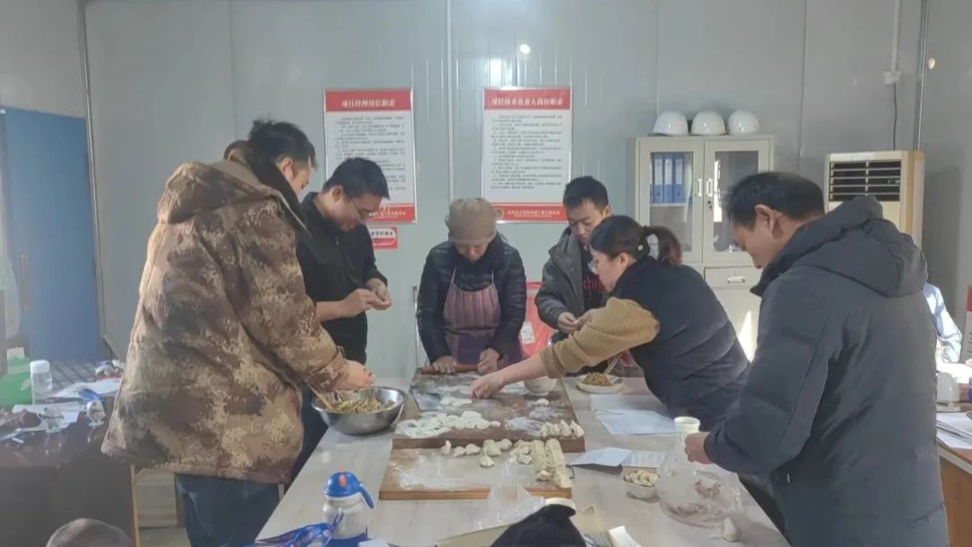 集团全国各项目部也在冬至当天组织开展包饺子活动,共叙温情,为给赛冬里仍奋战在施工现场的全体项目职工送上一份暖心冬日祝福,冬季的饺子,暖胃、更暖心。