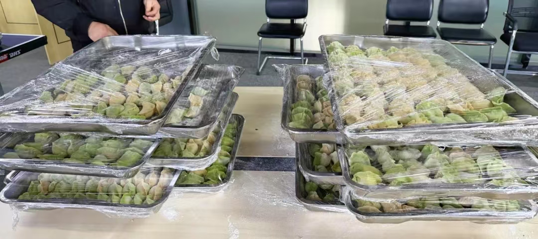 员工活动室变成了温馨的家庭厨房,大家纷纷“抢占”自己的一席之地。大家热情高涨,纷纷自行组团参与包饺子比拼,有的负责擀面皮、有的负责包饺子、还有的负责摆盘计数,现场充满了欢声笑语。大家在欢乐温馨的节日氛围中尽情展示着每个人的当家厨艺,最美好的祝福都随着大家的巧手“包进”了小小的饺子里。