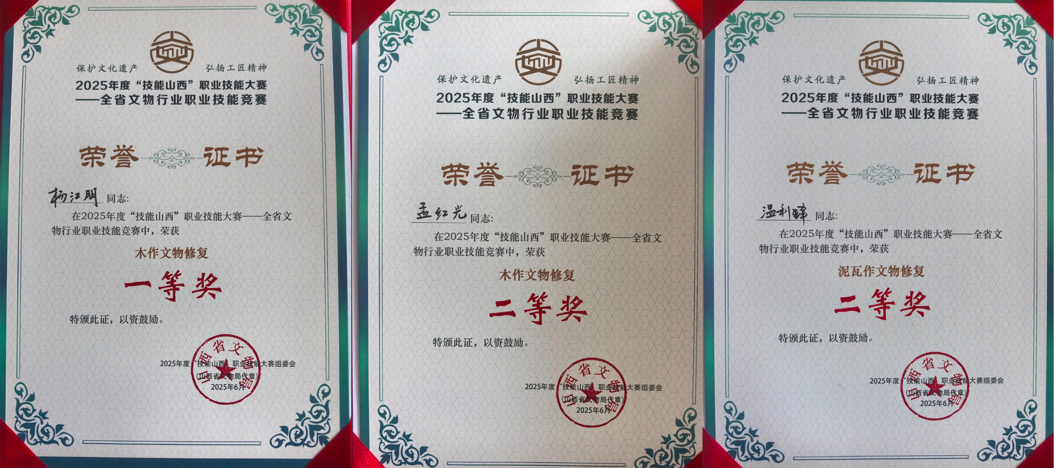 山西古建在2025年度“技能山西”职业技能大赛 ——全省文物行业职业技能竞赛中斩获佳绩