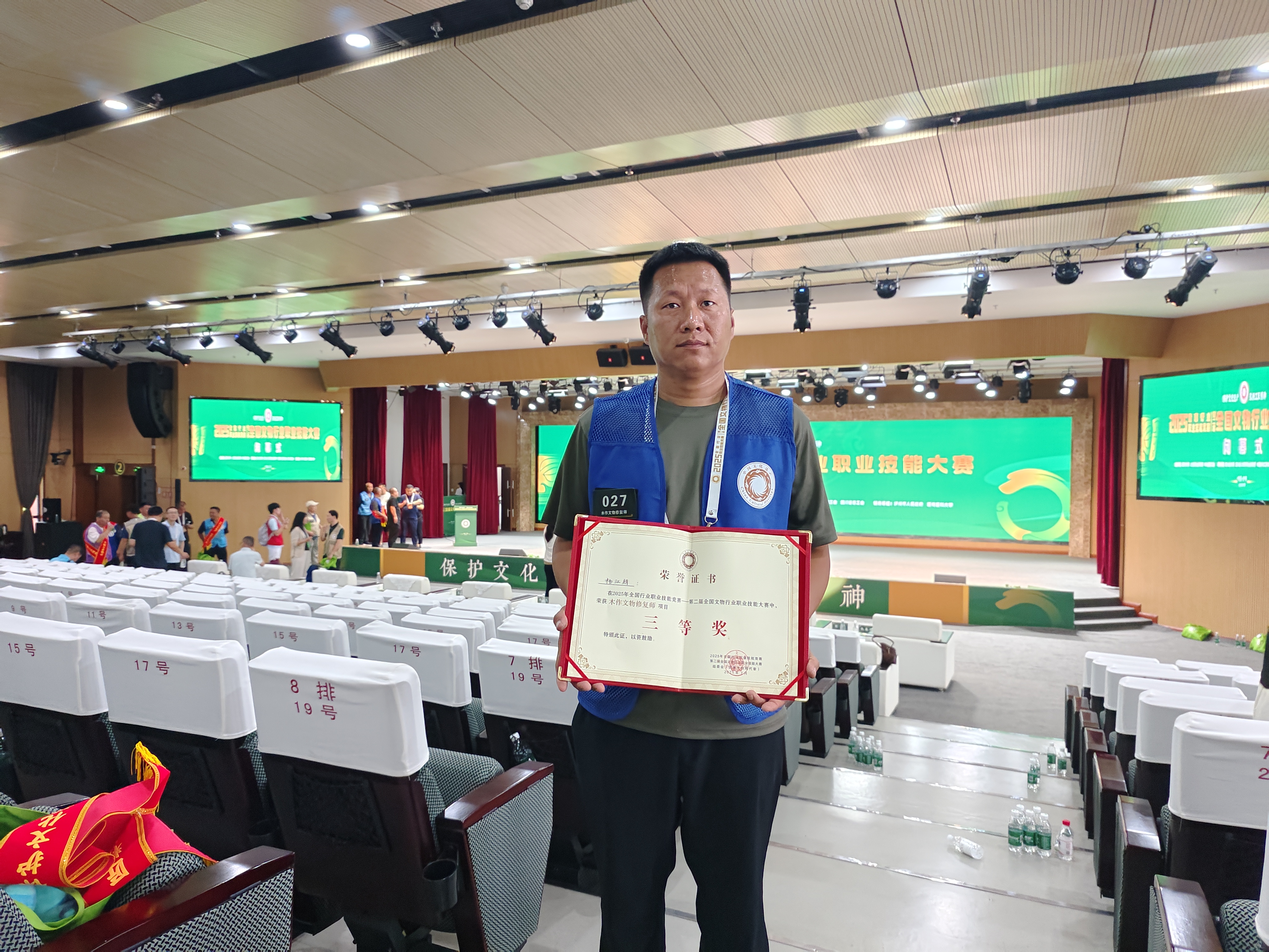 2025年7月,2025年全国行业职业技能竞赛——第二届全国文物行业职业技能大赛在四川省泸州市圆满收官,本次大赛以汇聚全国顶尖文物修复师同台竞技,内容涵盖金属、陶瓷、纸张书画、木作、泥瓦作文物修复师及考古探掘工6个竞赛项目,展现技艺与智慧的碰撞。山西省古建筑集团员工杨江朋在木作文物修复师项目中凭借精湛技艺脱颖而出,荣获三等奖,为山西古建领域再添荣誉。